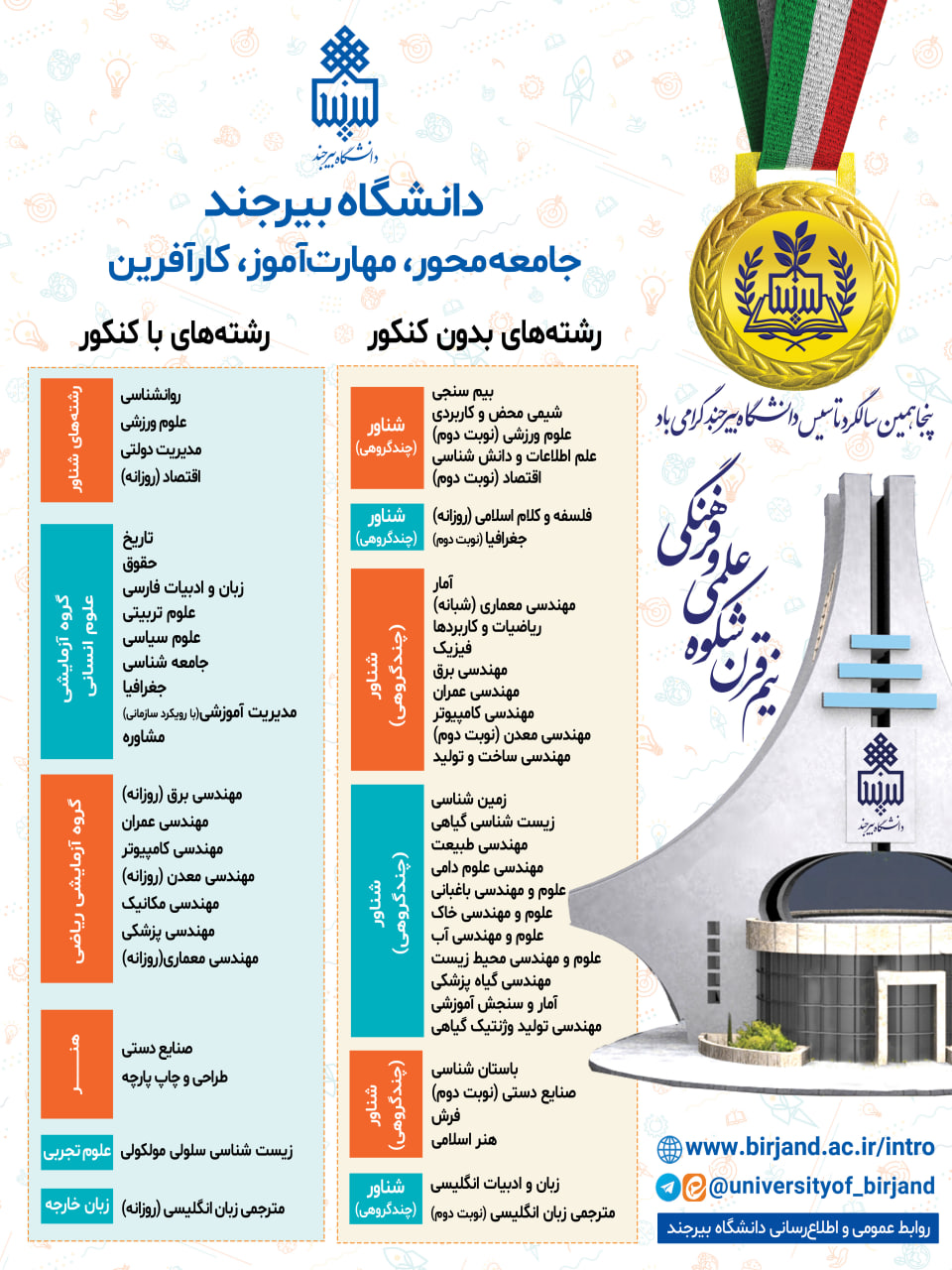 فهرست رشته های بدون کنکور و با کنکور دانشگاه بیرجند